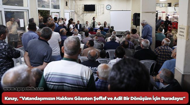 “Hepiniz daha sağlıklı ve güvenli koşullarda yaşamak, çocuklarınızın daha iyi bir çevrede büyümesini istiyorsunuz. Biz de bu süreci sizlerle birlikte, şeffaf ve adil bir şekilde yürüteceğiz” diyen Başkan Kınay, “Bu toplantı bizim için de çok kıymetliydi. Karabağlar Belediyesi olarak, vatandaşlarımızın hakkını gözeten her çalışmada yanınızda olacağız. Bu bölgenin yolundan, altyapısına kadar her şeyin yenilenmesi gerekiyor. Ancak bunu yaparken adaletten sapmadan ilerlemeliyiz. Herkes hakkını almalı ve geleceğini yeniden, umutla kurabilmeli” ifadelerini kullandı.