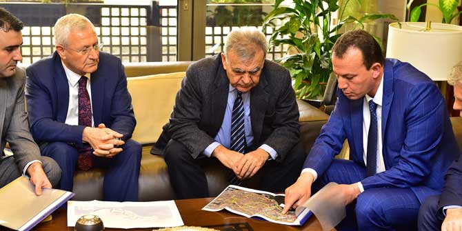 İzmir'deki ulaşım sektörünün temsilcileri, Büyükşehir Belediye Başkanı Aziz Kocaoğlu'nu ziyaret etti. Başkan Kocaoğlu, taksi ve minibüs esnafının sorunlarının ele alındığı görüşmede, “Proje ve yatırımlarımızı kimsenin ekmeğini eksiltmeden tamamlamak için çabalıyoruz” dedi.