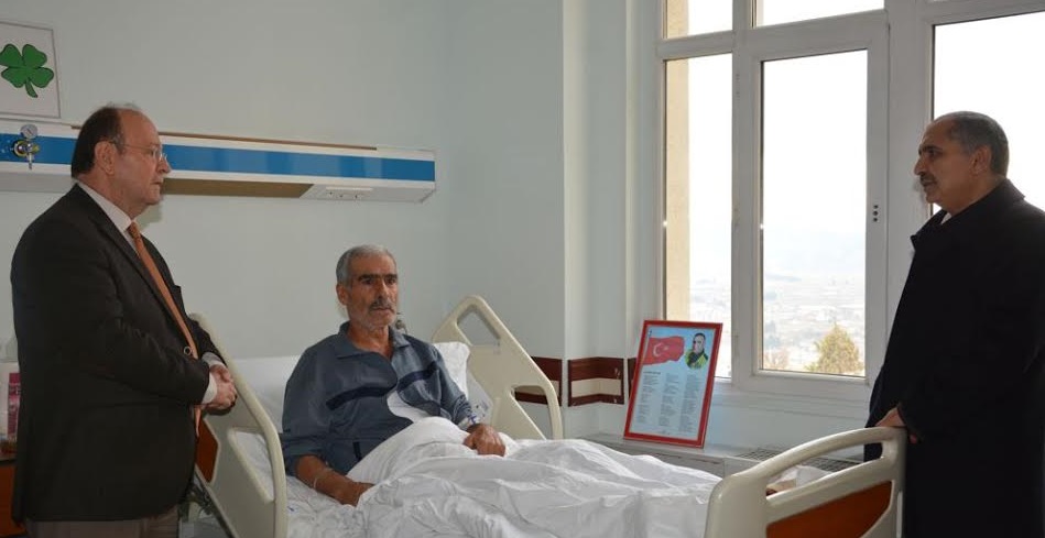 T.C. Efeler Belediye Başkanı M. Mesut Özakcan’ın ziyareti esnasında, Aydın Valisi Ömer Faruk Koçak’ta şehit babasını tedavi gördüğü odasında ziyaret etti.