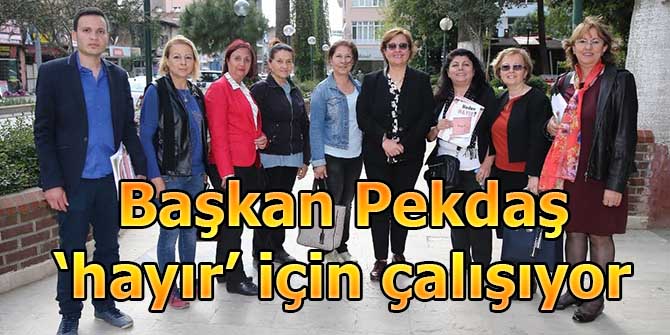 CHP İl Kadın Kolları Başkanı Nurşen Balcı ve kadın kolları üyeleriyle birlikte Ödemiş’e çıkarma yapan Başkan Pekdaş, gün boyu ‘hayır’ için çalıştı.