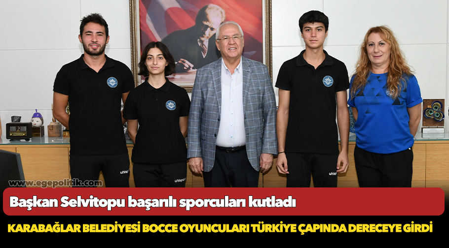 Türkiye Bocce Federasyonu tarafından Mersin'de düzenlenen Vole Atış Oyunları'nda Karabağlar Belediyesi Spor Kulübü Bocce Takımı, “gençler” kategorisinde 4, “büyükler” kategorisinde de 1 olmak üzere toplam 5 madalya kazandı. Genç Kadınlar'da Günsu Gökduman Türkiye 2.'si, çiftlerde Muammer Ünal ve Günsu Gökduman Türkiye 3.'sü, büyük erkeklerde Erhan Aytürk Türkiye 2.'si oldu. Başarılı sporcular antrenörleri Talia Dıramaz'la birlikte Başkan Selvitopu'nu ziyaret etti.