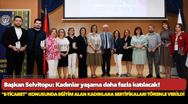 Başkan Selvitopu konuşmasının ardından kadınlara üniversite onaylı sertifikalarını, eğitimenlere de teşekkür belgelerini verdi.
