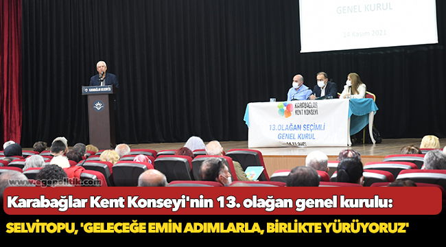 13. olağan genel kurula, Başkan Selvitopu, Karabağlar Kent Konseyi Başkanı Alev Ağrı ve konsey üyeleri, İzmir Kent Konseyi Başkanı Seniye Nazik Işık, CHP İlçe Başkanı Mehmet Türkbay, CHP İlçe Kadın Kolları Başkanı Aydan Tör, meclis üyeleri, muhtarlar, siyasi parti ve sivil toplum kuruluşu temsilcileri katıldı.
