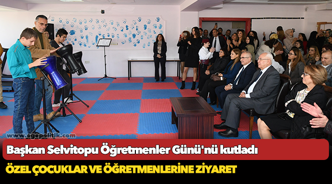 Başkan Selvitopu daha sonra Şehit Lütfü Gülşen Özel Eğitim Uygulama Okulu'nu ziyaret ederek, Okul Müdürü Turgay Toprak ve eğitimcilerin Öğretmenler Günü'nü kutladı. Başkan Selvitopu, Karabağlar Kent Konseyi Başkanı Alev Ağrı, konsey yürütme kurulu üyeleri, Konsey Engelli Meclisi üyeleri ve velilerle birlikte, burada eğitim gören “özel” öğrencilerin renkli sunumlarını izledi. Bir öğrenciyle masa tenisi oynayan Başkan Selvitopu, öğretmenlere kırmızı karanfil armağan ederek günlerini kutladı.