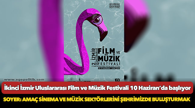 İzmir Büyükşehir Belediyesi’nin bu yıl ikinci kez düzenlediği İzmir Uluslararası Film ve Müzik Festivali 10 Haziran Cuma günü başlıyor. İzmir Büyükşehir Belediye Başkanı Tunç Soyer, festivali sabırsızlıkla beklediklerini dile getirerek “İhmal edilmiş bir alan olan sinema-müzik ilişkisini gündeme getiriyoruz. Amacımız sinema ve müzik sektörlerini İzmir’de buluşturmak. İzmir’in kurtuluşunun 100. yıldönümü nedeniyle 100’ü aşkın uzun metrajlı film içeren zengin bir programla seyirci karşısına çıkacak” dedi. Festival 19 Haziran’a kadar sürecek.