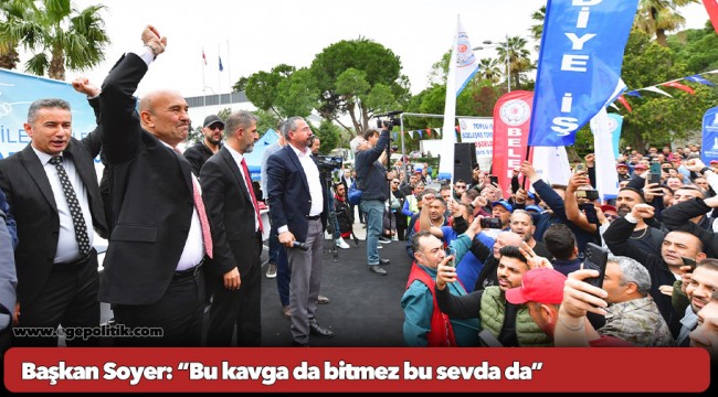 Kendini dünyanın en şanslı insanı olarak tanımlayan İzmir Büyükşehir Belediye Başkanı Tunç Soyer, “5 yıl boyunca eşit işe eşit ücret için, alın teri döken kardeşlerim emeğinin karşılığını alsın diye çabaladık. Sizi enflasyona ezdirmemek için yapmam gerekeni sonuna kadar zorladım. Her birinizi çok seviyorum. Siz bir yandan ailelerinizi geçindirmek için emek veriyorsunuz bir yandan da İzmir’den Türkiye’ye umut olmaya devam ediyorsunuz. Bu can bu bedende durdukça sonuna kadar yanınızdayım. Nerede olursam olayım, ne yaparsam yapayım sizin hakkınızı sonuna kadar koruyacağım. Bu memleket iyi, namuslu, güzel insanların yönettiği bir memleket haline gelecek. Benim görev sürem bitiyor ama bu kavga da bitmez bu sevda da” dedi.