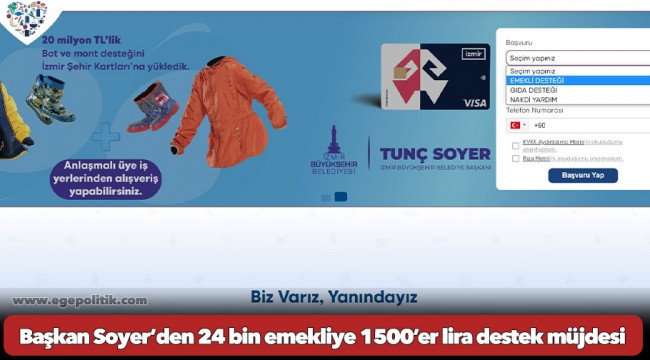 İzmir Büyükşehir Belediye Başkanı Tunç Soyer’in, en düşük emekli maaşının asgari ücretin çok altında kalmasının ardından duyurduğu ‘Emekliye Nakdi Destek Projesi’ hızla hayata geçirildi. Emeklinin mutfağındaki ekonomik yangını biraz olsun hafifletmek için 2024 yılında 25 bin emekliye bin 500'er liralık nakdi sosyal destek sağlanacak. Destek tutarı, Ramazan Bayramı öncesinde ihtiyaç sahiplerinin hesabına yatırılacak.