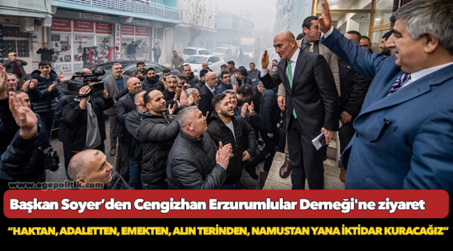 İzmir Büyükşehir Belediye Başkanı Tunç Soyer, Bayraklı Cengizhan Erzurumlular Derneği'ni ziyaret ederek Erzurumlu yurttaşlarla bir araya geldi. Başkan Tunç Soyer, ülkede yaşanan ekonomik krize değinerek, “Bu hikaye bir kader değil. Değişecek. Bu bizim elimizde. Siz siyasette var olacaksınız, sizin talepleriniz var olacak. Hakkınız, hukukunuz korunacak. Başka bir memleket ve Türkiye mümkün. Kimse enseyi karartmasın. Bizim arkamızda binlerce yıllık bir tarih var. Biz komşusu açken tok yatmayız. Biz çok kuvvetli bir milletiz. Atalarımız dünyanın bildiği en büyük zaferi, Kurtuluş Savaşı'nı kazanmışlar” dedi.