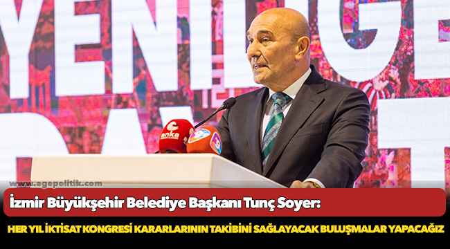 İktisat Kongresi'ni her sene düzenlemeye karar verdiklerini belirten Başkan Tunç Soyer, “İktisat Kongresi 21 Mart günü son bulmayacak. Aksine her sene bu kongrenin verdiği kararların, tespit ettiği ilkelerin takibini sağlayacak buluşmaları gerçekleştirmeye karar verdik. Her yıl adeta ilerleme raporu ortaya konması gibi. Bugün alınan kararların bir yıl içinde nerelere vardığı, hangilerinin gerçekleştiği, neden gerçekleşmediği, gerçekleşmesi için neler yapılması gerektiği hususlarını müzakere etmek için tekrar bir araya gelinecek. Bugün alınan kararların sonuna kadar takipçisi olacağız. Bu güzelim memlekette sadece siyasilerin yukarıdan aşağıya verdikleri kararlarla şekillenen bir ülkede yaşamak istemiyoruz. Hepimiz bu ülkenin kılcallarından beslenen, farklı fikirlerin özgürce ortaya konduğu, özgürce şekillenen fikirler ışığında da belirlenecek siyasi kararlar olmasını temenni ediyoruz. Daha adil, müreffeh, özgür, demokratik bir ülkeyi kurmak için bu kongrenin çok aydınlatıcı bir rol üstleneceğini söyleyebilirim. Heyecanımız çok büyük. Tarihsel bir görevi yerine getirmenin sorumluluğu içindeyiz” dedi.