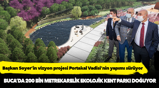 “Doğaya rağmen değil doğayla birlikte İzmir” diyen İzmir Büyükşehir Belediye Başkanı Tunç Soyer’in, kentte kişi başına düşen yeşil alan miktarını artırmak ve doğayı kent yaşamının içine dahil etmek için seçim döneminde duyurduğu çevre projelerinden biri olan Portakal Vadisi’nde çalışmalar yoğun tempoda devam ediyor. Buca’da Tınaztepe Mahallesi’nde Kültürpark’ın yarısı büyüklüğünde 200 bin metrekarelik alan İzmirliler için yeni bir nefes alma noktasına dönüşecek. Proje İzmir Büyükşehir Belediye Başkanı Tunç Soyer’in kentin arka mahalleleriyle ön sıraları eşit noktaya getirme hedefi açısından da büyük önem taşıyor.