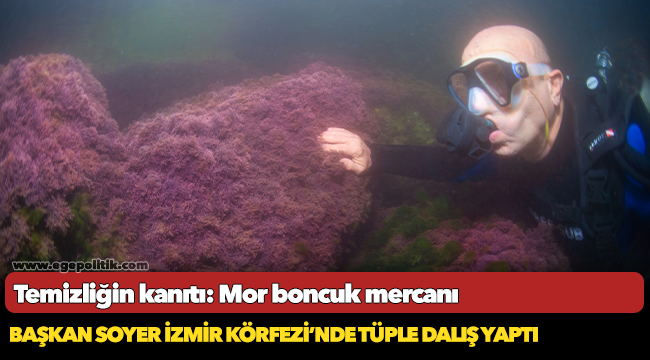 İzmir Büyükşehir Belediyesi'nin yatırımlarıyla hız kazanan İzmir Körfezi'ndeki temizlenme süreci sualtı görüntülerine de yansıyor. İzmir Körfezi'ndeki durumu gözlemlemek için Güzelbahçe İkinci Liman Halk Plajı'ndan saat 07.00 sularında tüplü dalış yaparak su altındaki canlı yaşamı inceleyen İzmir Büyükşehir Belediye Başkanı Tunç Soyer, mor boncuk mercanıyla karşılaştı.