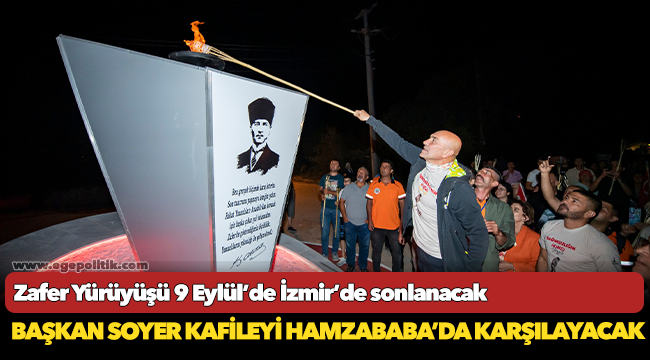 Zafer Kafilesi adım adım İzmir’e yaklaşıyor. İzmir Büyükşehir Belediye Başkanı Tunç Soyer kentin kurtuluşunun yüzüncü yılı anısına düzenlenen Afyon’dan İzmir’e Zafer Yürüyüşü’nde 13 gündür yollarda olan kafileyi yarın Kemalpaşa Hamzababa’da karşılayacak. Başkan Soyer Hamzababa’dan Bağyurdu’na kadarki 14 kilometrelik yolu kafileyle yürüyecek.