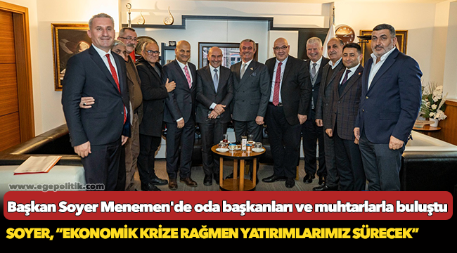 İzmir Büyükşehir Belediye Başkanı Tunç Soyer, Menemen ziyareti kapsamında ilçedeki meslek odalarının başkanları ve mahalle muhtarları ile bir araya geldi.