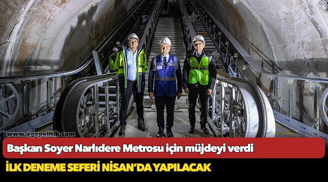 İzmir Büyükşehir Belediye Başkanı Tunç Soyer, yapımında sona gelinen Narlıdere Metrosu’nda incelemelerde bulundu. Şehitlik İstasyonu’ndan peronlara inen Başkan Tunç Soyer, “Hiçbir şey bizi yolumuzdan alıkoyamadı ve bitireceğiz. Nisan’da ilk deneme seferini yapacağız. Cumhuriyet’in 100. yılında İzmir’e Narlıdere Metrosu’nu hediye edeceğiz” dedi.