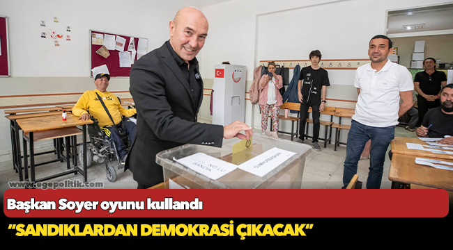 İzmir Büyükşehir Belediye Başkanı Tunç Soyer, Cumhurbaşkanlığı ikinci tur seçiminde oyunu eşi Neptün Soyer, kızları Defne ve Duygu ile Ulamış Ortaokulu'nda kullandı. Oy verdikten sonra konuşan Başkan Soyer, “Bu seçim sadece bir cumhurbaşkanı seçmekten ibaret değil. Belki de uzun yıllar boyunca yaşayacağımız rejimin seçimi anlamına geliyor. Diliyorum ki sandıklardan demokrasi çıkacak” dedi.