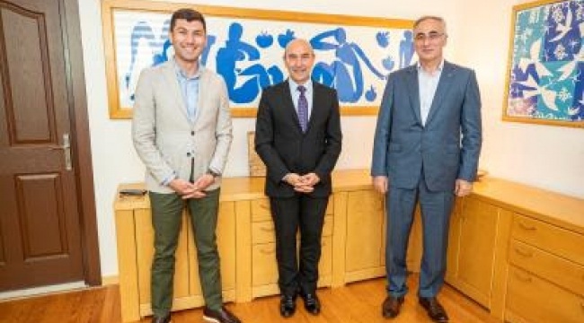 Giresun Piraziz Belediye Başkanı Hüseyin Görgülüoğlu ve Türkiye’nin en genç belediye başkanı sıfatını taşıyan Ordu Gülyalı Belediye Başkanı Ulaş Tepe İzmir Büyükşehir Belediye Başkanı Tunç Soyer’i İzmir Sanat’taki çalışma ofisinde ziyaret etti. Başkan Soyer kooperatifçilik ve gönüllü hasat konularındaki deneyimlerini paylaştı.