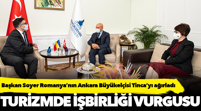 Büyükelçi Ştefan Alexandru Tinca ise Karadeniz’e kıyısı olan ülkelerin turizm konusunda işbirliği yapabileceğine değinerek “İzmir ile Köstence’nin kardeş kent protokolünü imzalaması için aracılık edebiliriz. Ayrıca kültürel, akademik ve ekonomik anlamda İzmir’in sunduğu fırsatlardan yararlanmak isteriz” dedi. Başkan Soyer İzmir’de bu yıl düzenlenecek Birleşmiş Kentler ve Yerel Yönetimler (UCLG) Kültür Zirvesi ile 2022 yılında yine İzmir’in ev sahipliği yapacağı Terra Madre gastronomi fuarından söz ederek “Sizin her iki organizasyonda da bulunmanızla ilgili bir işbirliği yapmalıyız” dedi.