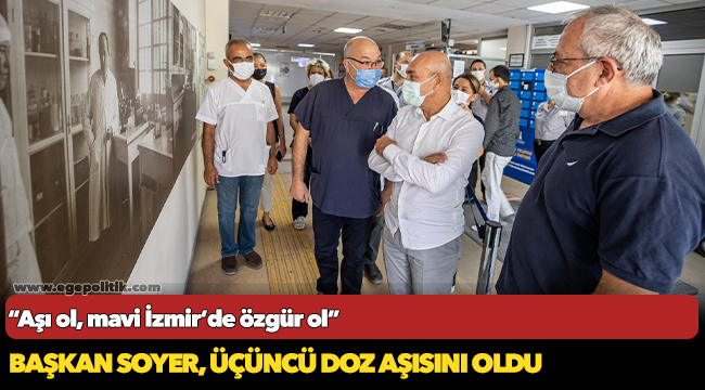 İzmir Büyükşehir Belediye Başkanı Tunç Soyer, dün üçüncü doz aşısını oldu. Başkan Soyer İzmirlilere “Hepinizi aşı olmaya ve koruyucu önlemleri sürdürmeye davet ediyorum. Gelin aşımızı olalım, güzel ülkemizi masmaviye boyayalım” diye seslendi.