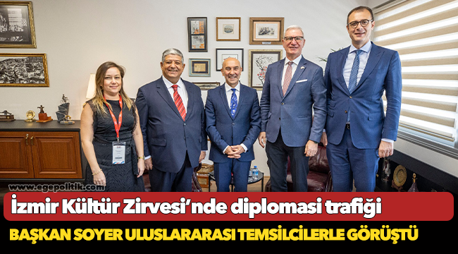 İzmir Büyükşehir Belediye Başkanı Tunç Soyer 65 ülkeden kültür üreticilerini “Kültür: Geleceğimizi Kurarken” temasıyla buluşturan Kültür Zirvesi kapsamında uluslararası temsilcilerle görüştü. Uluslararası heyetler, kendi kentlerine ait deneyimlerini, bilgi birikimlerini, yeni çözüm önerilerini ve planlarını Başkan Soyer’le paylaştı. Başkan Soyer, “Biz münferit çalışmalardan değil, uyum içerisinde ortak çalışmalardan yanayız. Fark yaratmak için uyum en önemli esas” dedi.