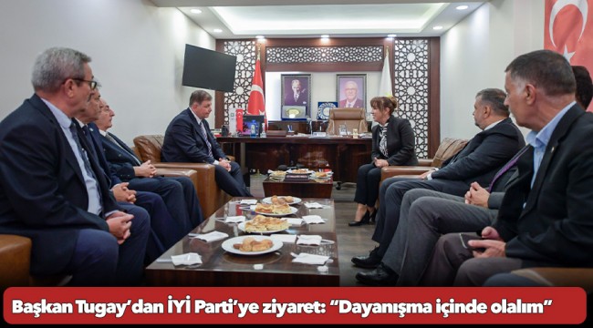 İzmir Büyükşehir Belediye Başkanı Dr. Cemil Tugay, İYİ Parti İzmir İl Başkanlığı’nı ziyaret etti. İYİ Parti İzmir İl Başkanı Ülkü Doğan’ın vefat eden babası Hüseyin Kemal Karabolat için taziye dileklerini ileten Büyükşehir Belediye Başkanı Tugay’a Cumhuriyet Halk Partisi (CHP) İzmir İl Başkanı Şenol Aslanoğlu da eşlik etti. Ziyarette İYİ Partili yöneticiler de yer aldı.