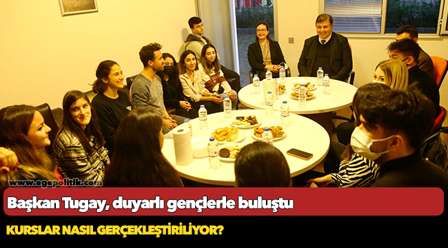 Karşıyaka Belediyesi tarafından ilçede yaşayan ileri yaştaki vatandaşlara yönelik başlatılan dijital okuryazarlık ve İngilizce kurslarında eğitmen olarak görev alan Katip Çelebi Üniversitesi öğrencileri ile buluşan Başkan Tugay, duyarlılıkları sebebiyle gençleri tebrik etti. Kurslara gönüllü olarak katılan ve ileri yaştaki vatandaşlara banka işlemleri ve diğer dijital işlemlerinin yanı sıra sosyal medya kullanımında eğitim ve destek veren öğrencilere teşekkür eden Cemil Tugay, yaptıkları katkının önemine dikkat çekti. Baskan Tugay gençleri çevre konusunda gönüllü çalışmalar yapmaya da davet etti.