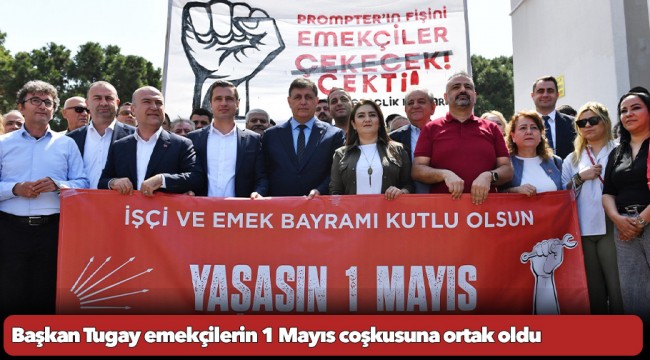 Üzerinde “Yaşasın 1 Mayıs, yoksuldan alan, zengine veren düzeninize son vereceğiz” yazılı pankart arkasında işçilerle birlikte alana kadar sloganlar ve marşlar eşliğinde yürüyen Başkan Tugay, Deniz Erdur isimli 10 aylık bebeği de kucağına alarak fotoğraf çekildi. Kalabalık, “Yaşasın 1 Mayıs alanlardayız”, “Hak, hukuk, adalet” sloganları attı. Başkan Tugay, kortej yürüyüşü sırasında basın mensuplarına değerlendirmelerde bulundu. 1 Mayıs'ta her zaman alanlarda olduklarını belirten Tugay, şunları söyledi: “Bugün Cumhuriyet Halk Partisi İzmir İl Örgütü, il başkanımız, genel başkan yardımcılarımız, milletvekillerimiz, belediye başkanlarımızla hep beraber yürüyoruz. Emeğin yanında olduğumuzu, hakkın yanında olduğumuzu, demokrasinin, eşitliğin yanında olduğumuzu bugün de her zaman olduğu gibi gösteriyoruz. Aydınlık günlere adım adım yürüyoruz. Tüm emekçilerimizin, halkımızın 1 Mayıs'ı kutlu olsun.”