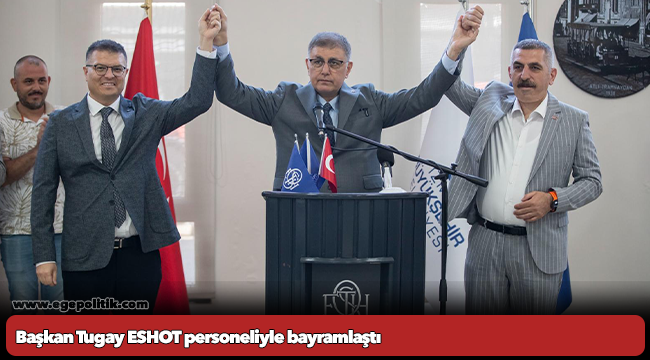 İzmir Büyükşehir Belediye Başkanı Dr. Cemil Tugay, Kurban Bayramı öncesinde İZSU’nun ardından ESHOT Genel Müdürlüğü personeli ile bayramlaştı. Başkan Tugay’ı Buca Gediz Atölyesi’nde İzmir Büyükşehir Belediyesi Genel Sekreter Yardımcısı ve ESHOT Genel Müdürü Övünç Özgen karşıladı. Bayramlaşmaya İzmir Büyükşehir Belediyesi Başkan Vekili Dr. Zafer Levent Yıldır, İzmir Büyükşehir Belediyesi Genel Sekreter Yardımcısı Prof. Dr. Pınar Okyay, Devrimci İşçi Sendikaları Konfederasyonu (DİSK) Genel İş Sendikası 1 No'lu Şube Başkanı Engin Topal da katıldı.