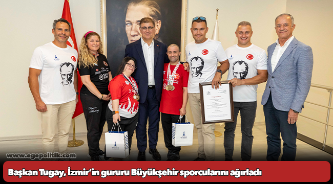 İzmir Büyükşehir Belediyesi Spor Kulübü’nün son dönemde dünya çapında başarılara imza atan sporcuları İzmir Büyükşehir Belediye Başkanı Dr. Cemil Tugay’ı makamında ziyaret etti. Görüşmede İzmir Büyükşehir Belediyesi Spor Kulübü’nün Manş Denizi’ni geçen otizmli ultra maraton yüzücüsü Tuna Tunca, Cook Boğazı’nı en hızlı geçen yüzücü Emre Erdoğan, Down Sendromlular Avrupa Cimnastik Şampiyonası’nda altın madalyayı göğüsleyen Alper Öztürk ve Down Sendromlular Avrupa Cimnastik Şampiyonası’nda derece yapan Selin Durgut Başkan Dr. Cemil Tugay ile buluştu. Ziyarete İzmir Büyükşehir Belediyesi Genel Sekreter Yardımcısı Prof. Dr. Pınar Okyay, İzmir Büyükşehir Belediyesi Spor Kulübü Başkanı Ertuğrul Tugay, İzmir Büyükşehir Belediyesi Spor Kulübü Başkan Vekili Tuğçe Gülcüler, İzmir Büyükşehir Belediyesi Gençlik ve Spor Hizmetleri Dairesi Başkanı Anıl Kaçar ve antrenörler katıldı.