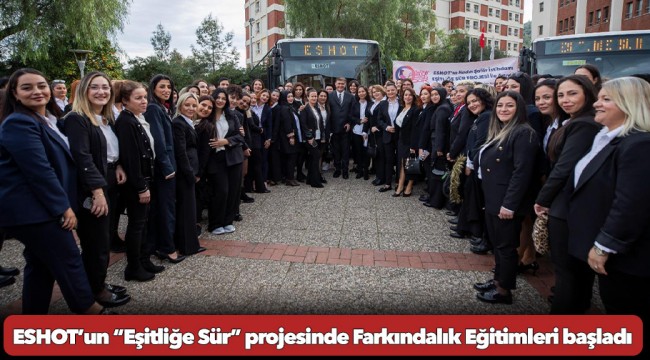 ESHOT Genel Müdürlüğü’nün geliştirdiği ve Fransız Kalkınma Ajansı’ndan 100 bin Euro’luk hibe desteği sağlayacak Eşitliğe Sür projesinde farkındalık eğitimleri, İzmir Büyükşehir Belediye Başkanı Dr. Cemil Tugay’ın da katıldığı törenle başladı. Toplu ulaşım hizmetlerinde kadın şoför istihdamını artırmak ve toplumsal cinsiyet eşitliği bilincini güçlendirmek amacıyla hazırlanan proje kapsamında İzmir Büyükşehir Belediyesi’ne iş başvurusunda bulunan 120 kadın şoför adayı, proje kapsamında iş birliği protokolü yapılan İzmir Ekonomi Üniversitesi’nde (İEÜ) Farkındalık Eğitimleri’ne alındı. Törene, Başkan Dr. Cemil Tugay’ın yanı sıra; İzmir Ticaret Odası Meclis Başkanı Selami Özpoyraz, İEÜ Rektörü Rektör Prof. Dr. Yusuf Hakan Abacıoğlu, İzmir Büyükşehir Belediyesi Genel Sekreteri Ramazan Tezcan, ESHOT Genel Müdürü Övünç Özgen, İEÜ öğretim üyeleri, ESHOT bürokratları ve kadın şoför adayları katıldı. Fransız Kalkınma Ajansı Türkiye Direktörü Tanguy Denieul de online olarak bağlandı ve programı takip etti.