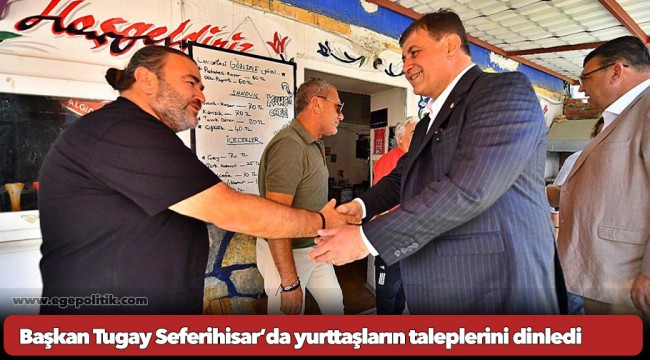 İzmir Büyükşehir Belediye Başkanı Dr. Cemil Tugay, bayram tatilinde ilçe turuna Karaburun’un ardından Seferihisar ile devam etti. Seferihisar Belediye Başkanı İsmail Yetişkin'i makamında ziyaret eden Başkan Cemil Tugay, hem İzmir'e hem de ilçeye yönelik projelerini anlattı.