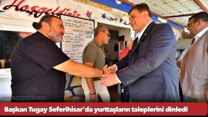 İlçede ilgiyle karşılanan Başkan Tugay, fotoğraf çekmek isteyen Seferihisar sakinlerini de kırmadı.