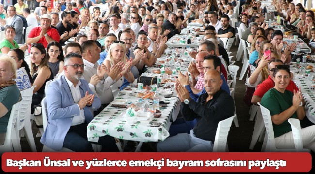 Karşıyaka Belediyesi tarafından düzenlenen bayram yemeği, Örnekköy Şantiye Tesisleri’nde kurulan dev sofrada yüzlerce çalışanı bir araya getirdi. Belediye Başkanı Yıldız Ünsal’ın ev sahipliğindeki yemeğe meclis üyeleri ile bürokratlar da katıldı. Emekçilerin Başkan Ünsal’ı alkışlarla karşıladığı buluşmada birlik, beraberlik ve dayanışma mesajları verildi. Mesai arkadaşlarıyla birlikte yemek yiyen Ünsal, Kurban Bayramı’nın sağlık, mutluluk ve barış getirmesini diledi.