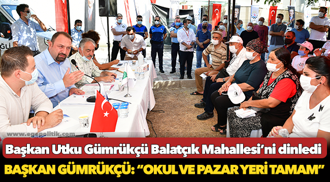Sözlerine pazar yeri ve okul müjdesini vererek başlayan Başkan Gümrükçü, “Balatçık Mahallemiz için pazar yeri ihalesini yaptık. En geç 3 aya kadar bitecek. Okul yapma yetkisinin Milli Eğitime ait olmasından dolayı, okul yeri olan arsamızı meclisimizde karar alarak haftaya Milli Eğitime devredeceğiz. Önümüzdeki yıl inşaatına başlanacak. Sinek ve haşere ilaçlama çalışmalarımızı sizlerin de fark ettiği üzere kararlılıkla sürdürüyoruz. Yeni aldığımız çevre dostu çöp konteynerlerini eskileriyle değiştireceğiz. Büyükşehir Belediyemiz, mazgal ihtiyacı için ihaleyi yaptı iki ay içerisinde inşaata başlayacak. Doğalgaz konusu, bizim yetki alanımızda olmamasına rağmen yetkili firmayla görüşüp talep edilen yerlerde altyapı çalışmalarının bir an önce başlaması için elimizden geleni yapacağız” dedi.