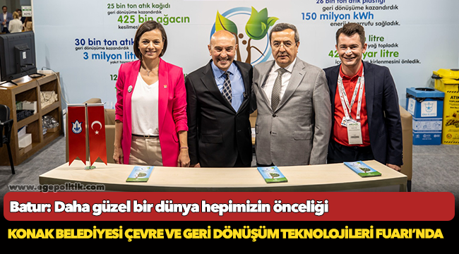 Konak Belediyesi olarak çevre ve geri dönüşüm çalışmalarına büyük önem verdiklerinin altını çizen Batur, İklim Değişikliği ve Sıfır Atık Müdürlüğü kurduklarını vurguladı. Konak’ta Türkiye’ye örnek olacak bir çalışma yaparak, ambalaj ve kâğıt atığı toplayan sokak emekçilerinin daha düzenli ve hak kaybına uğramadan çalışmasını sağladıklarını vurgulayan Batur, gezici ambalaj atığı toplama aracını hizmete aldıklarını belirtti. “Geri Dönüşüm Evde Başlar” diyerek, pilot bölge olarak belirlenen Alsancak, Kahramanlar, Kültür ve Mimar Sinan mahallelerinde atıkları vatandaşların evlerinden topladıklarını belirten Batur, hazırladıkları iki projenin Çevre ve Şehircilik Bakanlığı tarafından yürütülen İklim Değişikliğine Uyum Hibe Programı kapsamında yaklaşık 5 buçuk milyon TL hibe almaya hak kazandığını da anımsattı.