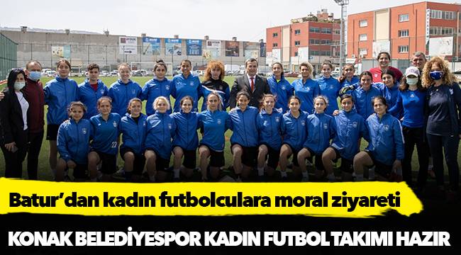 Konak Belediyesi’nin Halkapınar’daki tesislerinde antrenmanlarına devam eden Konak Belediyespor Kadın Futbol Takımı oyuncularıyla buluşan Başkan Batur, Turkcell Kadınlar Futbol Ligi’nde şampiyonluk mücadelesi verecek takıma başarı dileklerini iletti ve “Konak Belediyesi’ni ve İzmir’i en iyi şekilde temsil edeceğinize inanıyorum. Takımımıza güvenimiz tam” dedi.
