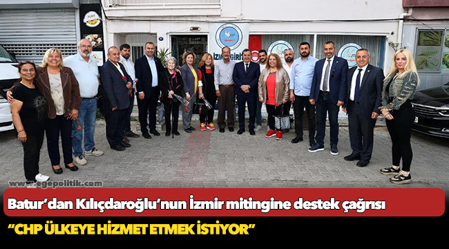 “14 Mayıs, daha büyük umutlarla geleceğimize sarıldığımız günlerin başlangıcı olacak. Buna yürekten inanıyorum. İşte bu günler için 13. Cumhurbaşkanı Adayımız Kemal Kılıçdaroğlu’nun 30 Nisan Pazar günü, saat 15.30’da Gündoğdu Meydanı’nda düzenleyeceği İzmir mitingine sivil toplum kuruluşları temsilcilerimiz, esnaf kuruluşlarımız, tüm vatandaşlarımız destek olmalı. Çoluk çocuk herkesi tüm vatandaşlarımızı bayram yerine dönecek miting alanında bekliyoruz. Herkesi orada görmek istiyoruz. Çok güzel bir beraberlik zemininden, dayanışmadan aday olarak yükselen Sayın Kılıçdaroğlu’nun mitingi 14 Mayıs akşamının provası gibi olma. İzmir, İzmir’e yakışanı bilir ve İzmir her zaman İzmir’e yakışanı yapar. Buna inancım sonsuz” dedi. Batur, 14 Mayıs günü seçilecek cumhurbaşkanının tüm Türkiye’nin cumhurbaşkanı, umudu, aydınlığı olacağını da sözlerine ekledi.