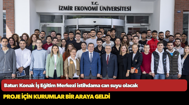 Konak Belediye Başkanı Abdül Batur, iş garantisi ve uluslararası sertifika imkanıyla başlattığı AB hibe destekli Konak İş Eğitim Merkezi projesi kapsamında eğitim alan gençleri ziyaret etti. Başkan Batur, 18-29 yaş aralığındaki Konaklı 60 gencin İzmir Ekonomi Üniversitesi’nde gerçekleştirilen derse İzmir Ekonomi Üniversitesi Rektörü Prof. Dr. Yusuf Hakan Abacıoğlu, rektör yardımcıları ve üniversite hocaları ile birlikte katıldı. Derse katılmadan önce Rektör Abacıoğlu’nu makamında ziyaret eden Başkan Batur, Konak Belediyesi’yle birlikte proje ortağı olarak Konak İş Eğitim Merkezi projesine verdikleri katkı için Abacıoğlu’na plaket takdim etti.