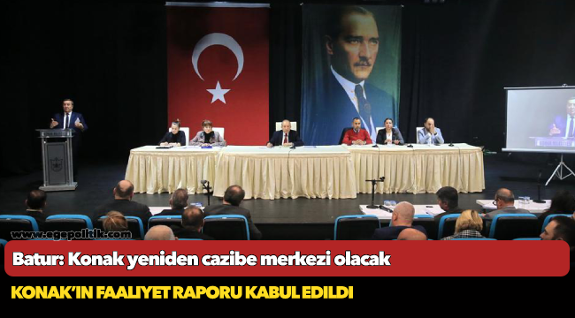 Nisan ayı ikinci oturumunu gerçekleştiren Konak Belediye Meclisi’nde, 2022 Yılı Belediye Başkanı Faaliyet raporu oy çokluğuyla kabul edildi. Oylama için meclis başkanlığı koltuğundan inen Başkan Batur, raporla ilgili görüşleri dinledikten sonra kürsüye gelerek, 2022 yılı faaliyet raporuna yönelik konuşma yaptı. Eleştirilere de tek tek cevap veren Başkan Batur konuşmasına, “Dördüncü yılı bitirip beşinci yıla başladığımız hizmet dönemimizde şimdiye kadarki ‘Birlikte Konak’ anlayışıyla aldığımız kararlardaki birliktelikten dolayı bütün meclis üyesi arkadaşlarıma ayrı ayrı teşekkür ederim. Ayrıca tüm çalışma arkadaşlarıma, tüm emekçi kardeşlerime, Konak’ı en iyi şekilde temsil ettikleri için, hizmet ürettikleri için çok teşekkür ediyorum” sözleriyle başladı.