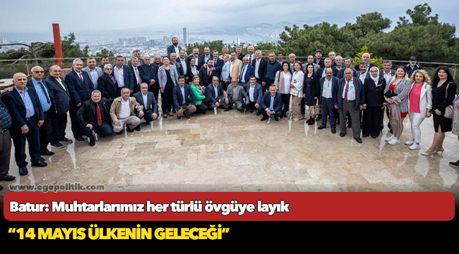 Konaklı muhtarlarla uyum içinde çalıştıklarını belirten Batur, “Muhtar kardeşlerimiz mahallesine, bölgesine hâkim; ne istediğini, ne yapılması gerektiğini, önceliklerini bilen arkadaşlarımız. Konak’taki muhtarlarımız her türlü övgüye layık. Yaptığınız çalışmalar nedeniyle hepinize çok teşekkür ediyorum. Çok güzel işler yaptık, bundan sonra da yapmaya devam edeceğiz, birlikte çalışacağız” diye konuştu. 14 Mayıs’ın Türkiye’nin varoluş seçimi olduğunu söyleyen Batur, “14 Mayıs, bu ülkenin geleceği. Sizlere de büyük görevler düşüyor. Sizlere inanıyor, güveniyoruz” dedi.