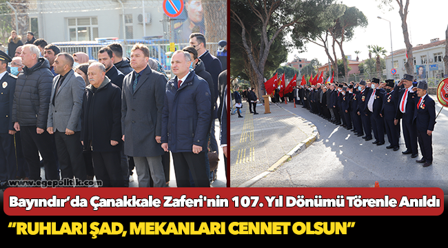 Çanakkale Zaferi'nin 107. yıl dönümü ve 18 Mart Şehitleri Anma Günü’nde bir açıklama yapan Bayındır Belediye Başkanı Uğur Demirezen “Çanakkale Zaferimizin 107. Yıldönümünde, başta Mustafa Kemal Atatürk olmak üzere, bu Vatanı tertemiz kanlarıyla bizlere emanet eden bütün Şehitlerimizi bir kez daha rahmet, şükran, minnet ve saygıyla yâd ediyorum. Ruhları şad, mekanları Cennet olsun.” dedi