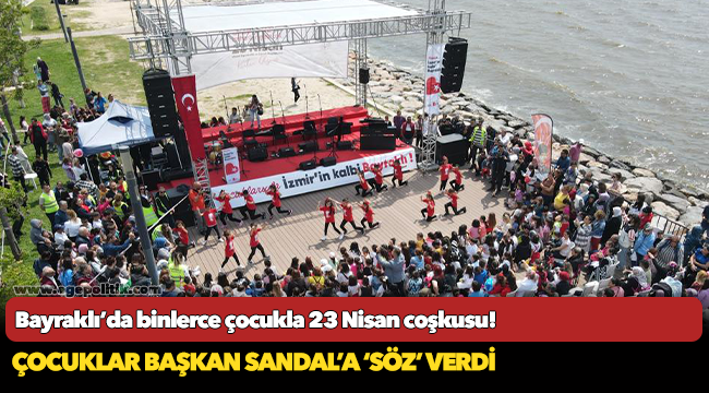 Bayraklı Belediyesi iki hafta boyunca süren çeşitli etkinliklerle 23 Nisan’ı binlerce çocuğun katılımıyla kutladı. Etkinliklerin finali Bayraklı sahilindeki görkemli kutlama törenle yapıldı. Etkinliğe Başkan Serdar Sandal, eşi Aylin Sandal, oğlu Yağız Sandal, CHP Bayraklı İlçe Başkanı Didem Gültekin, meclis üyeleri, muhtarlar ve 5 bine yakın çocuk ile aileleri katıldı.