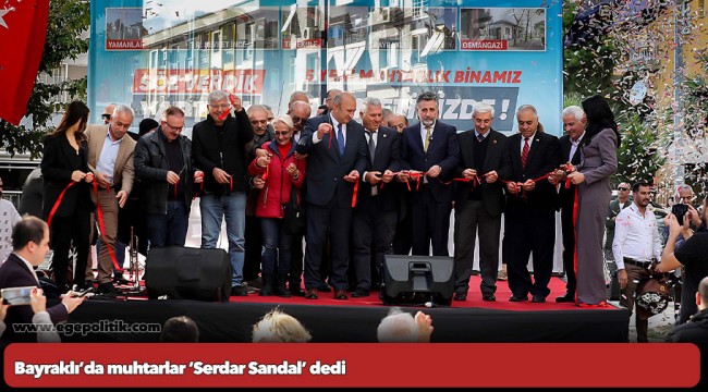 4,5 yıldır muhtarlarla omuz omuza çalıştıklarını ve hizmet ürettiklerini söyleyen Başkan Sandal’a bir teşekkür de muhtarlardan geldi. Bayraklı Muhtarlar Derneği Başkanı ve Yamanlar Mahallesi Muhtarı Kemal Aydın ise, “Göreve geldiği günden bu yana muhtarların ve halkın yanında olan Serdar Sandal Başkanımıza teşekkür ediyoruz. Yapılanların devamı ve yarım kalanların tamamlanması için yeniden aday gösterilmesini destekliyoruz” dedi.