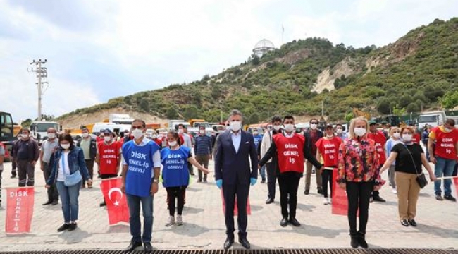 Bayraklı Belediyesi Fen İşleri Müdürlüğü'nün Doğançay'daki şantiyesinde düzenlenen programa Başkan Sandal'ın yanı sıra CHP Bayraklı İlçe Başkanı Pınar Susmuş, DİSK Genel İş İzmir 6 No’lu Şube Başkanı Değer Yıldız ve belediye işçileri katıldı.
