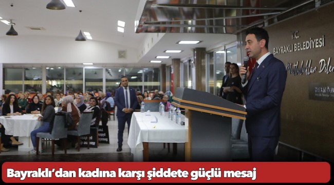Bayraklı Belediye Başkanı İrfan Önal, "Kadına yönelik şiddet, yalnızca bireylerin değil toplumun ve tüm insanlığın kanayan yarasıdır. Maalesef bu sorun, cinsiyet eşitsizliğinden beslenen toplumsal kalıplar ve yanlış inanışlarla büyüyen bir meseledir. Kadına karşı işlenen şiddet, insan hakları ihlalidir ve hiçbir gerekçeyle meşru gösterilemez. Bayraklı Belediyesi olarak, kadınlarımızın güvende hissettiği ve eşit haklara sahip olduğu bir dünya için her türlü haksızlığın karşısında durmaya devam edeceğiz. ‘Güçlü Kadınlar Güvenli Yarınlar’ diyerek dayanışmamızı büyütmek istiyoruz. Kadınlarımız asla yalnız değildir. Sizlere yönelik her türlü haksızlığa karşı yanınızda olmaya kararlıyız. Güvenli ve eşit bir kenti hep birlikte inşa edeceğiz" dedi.