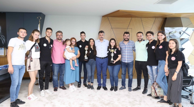 Halk oyunları ekibi yöneticisi Ezel Keç ise, “Başkanlığınızdan sonra aldığımız kupaları size hediye etmek istiyoruz. Ekip olarak iddialı bir takımız. Önümüzdeki yıllarda da şansımızın olduğunu düşünüyoruz” diye konuştu. Halk oyunları ekibine destek olmaya devam edeceklerini dile getiren Başkan Sandal, ekibe başarılar dileyerek, kupalar için teşekkür etti.