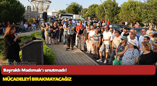 CHP Bayraklı İlçe Başkanı Didem Gültekin, “Bir gün bu ülkede direniş zaferle sonuçlanacak ve bu topraklarda kimse yakılamayacak. Biz bir ölür bin diriliriz. O gün orada canice yakılan sadece bedenlerdi. Yaktınız, bedenleri öldürdünüz ama fikirleri asla öldüremeyeceksiniz ve bu fikirler ilelebet sürecek. Kendilerini kurtardıklarını sananlar insanların vicdanında yargılanmaya devam edecek. Bu mücadeleden bir an olsun geri durmayacağız. Bu dava öyle bir dava ki; hiçbir zaman bitmeyecek. Bu ülkede ne Hasret’leri, ne Behçet’leri ne de Asım’ları bitirebilecekler” dedi.