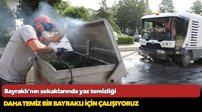 Bayraklı Belediyesi yaz sıcaklarının artmasıyla birlikte oluşabilecek çöp konteynerleri kokularının önüne geçmek için yıl boyunca sürdürülen temizlik çalışmalarını hızlandırdı. Bu kapsamda Temizlik İşleri Müdürlüğü ekipleri, her gün ilçenin 24 mahallesinde belirlenen program dahilinde konteynerlerin bakım, onarım ve boyasını yapıyor. Özel temizleme aracı ile baştan aşağı steril hale getirilen konteynerler yıkanıp, olası koku ve kötü görüntünün de önüne geçiliyor. Eskiyen konteynerler değiştirilirken, haşerelerin artmasına karşı da önlemler alınıyor.