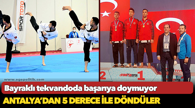 Bayraklı Belediyesi Gençlik ve Spor Kulübü bu yıl 7-13 Şubat tarihleri arasında 9’uncusu Antalya’da düzenlenen Uluslararası Türkiye Açık Tekvando Turnuvası’na katıldı. 49 ülkeden bin 103 sporcunun kıyasıya yarıştığı müsabakalarda Bayraklı Belediyesi sporcuları 5 dereceyle turnuvada fark yarattı. Bayraklı Belediyesinin milli sporcuları Ömer Tekin, Esad Kayan ve Kadir Şener takımlarda birinci olarak şampiyonluğu göğüsledi. Ömer Tekin ve Esad Kayan bireysel müsabakalarda ise 3’üncü oldu. Kadınlarda Sümeyra Yıldız 5’inciliği elde ederken, çiftlerde ise Sümeyra Yıldız ile Kadir Şener turnuvayı 5’inci tamamladı.