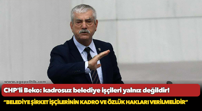 Belediye şirket işçilerinin kamu görev yaptığını ve kamu personeli olduğunu anımsatan Beko, özlük haklarıyla beraber, belediyenin gerçek kadrosuna geçirilmesi gerektiğini söyledi. Zorunlu emeklilik diye bir sorunun 2018 yılında KHK ile belediye işçilerinin başına bela edildiğini de anımsatan CHP'li Beko, bu uygulamanın da kaldırılması gerektiğini savunarak, "Bu emekçiler yıllardır çok ezildiler. Çünkü zorunlu emekli olmak istemiyorlar. Yaştan emekli ediyorlar ancak emekli maaşı bağlamıyorlar. Yani EYT'li oluyorlar. İş bulamıyorlar. Zorunlu emeklilik diye bir şey olabilir mi? Bu yanlış derhal düzeltilmelidir" dedi.