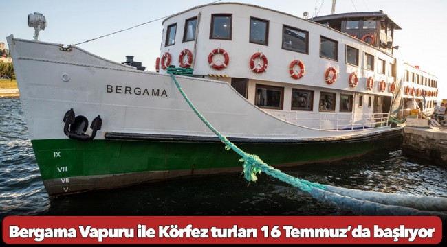 İzmir Büyükşehir Belediyesi’ne bağlı İZDENİZ ve İzDoğa’nın düzenlediği Bergama Vapuru ile Körfez Turu etkinliği 16 Temmuz’da başlıyor. 19.00 ile 21.00 saatleri arasında düzenlenen turlara katılacak yurttaşlar profesyonel rehberler eşliğinde hem İzmir’in eşsiz gün batımına tanık olacak hem de kentin 8 bin 500 yıllık tarihini keşfedecek.